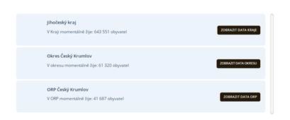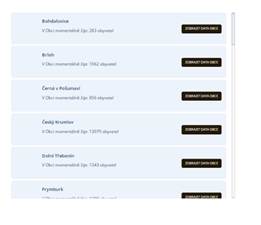 - přehled obcí a měst spadajících pod vybranou oblast (např. ORP nebo MAS)