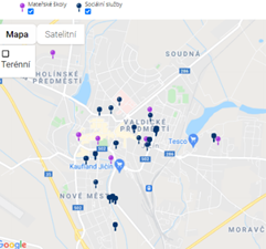 - seznam mateřských škol a poskytovatelů sociálních služeb podle databází MŠMT a MPSV (seznam zařízení a služeb nemusí být kompletní)